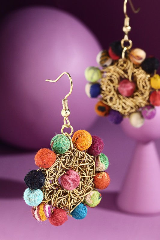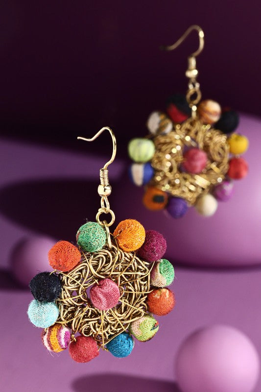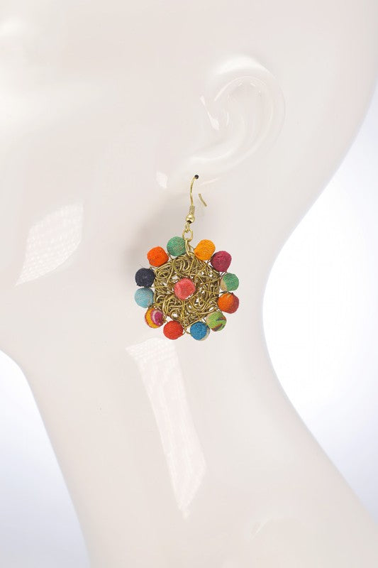 Whimsical abstract hand-wrapped cotton beaded dangle & drop earrings