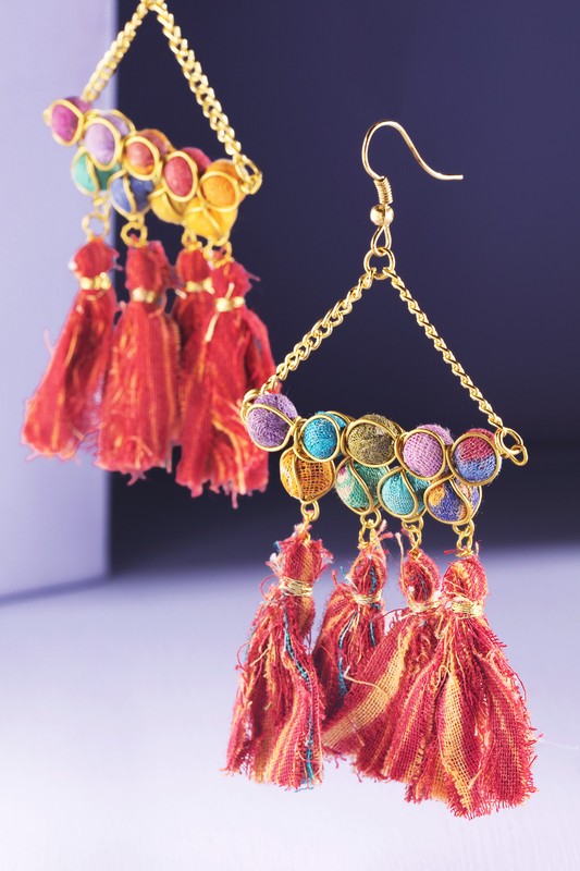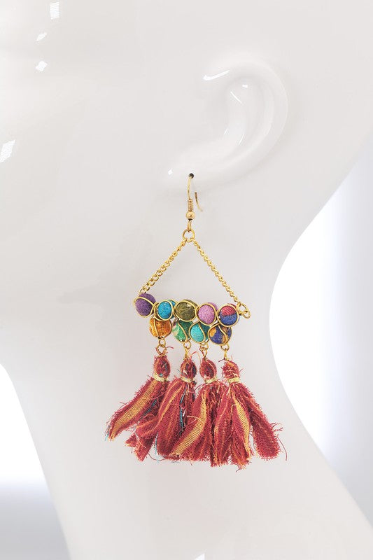 Handmade Triangular Dangle Earrings with Tassels