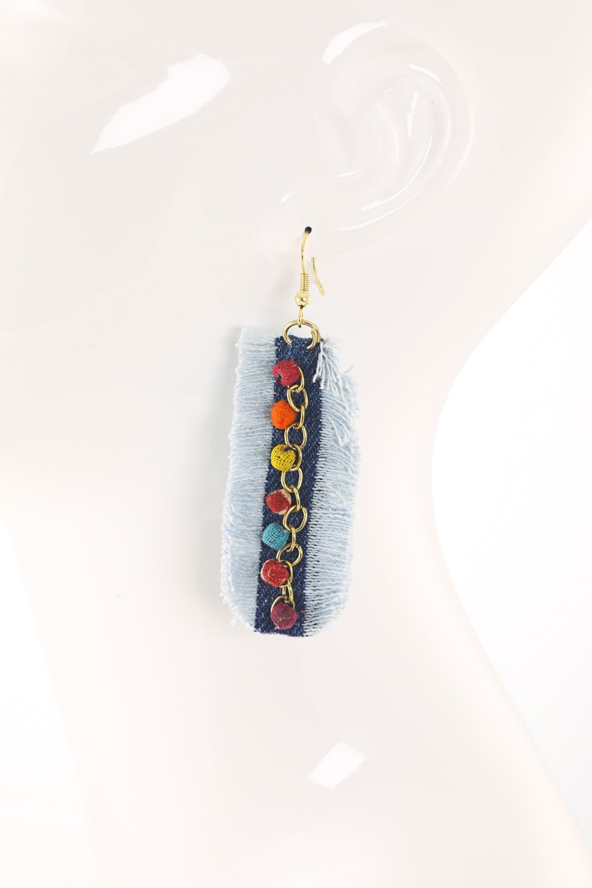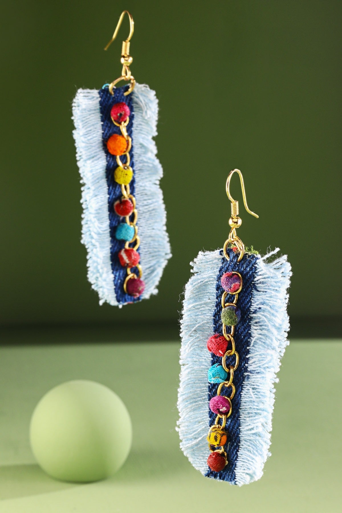 Handmade Denim Fringe Earrings with Vibrant Beads