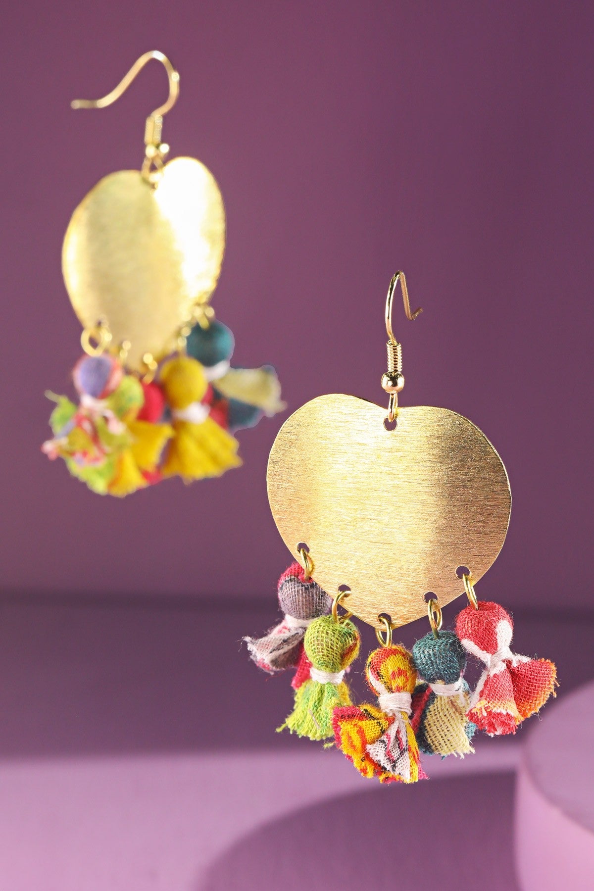 Metal Heart Dangle and Drop Earrings with Tassel Accents