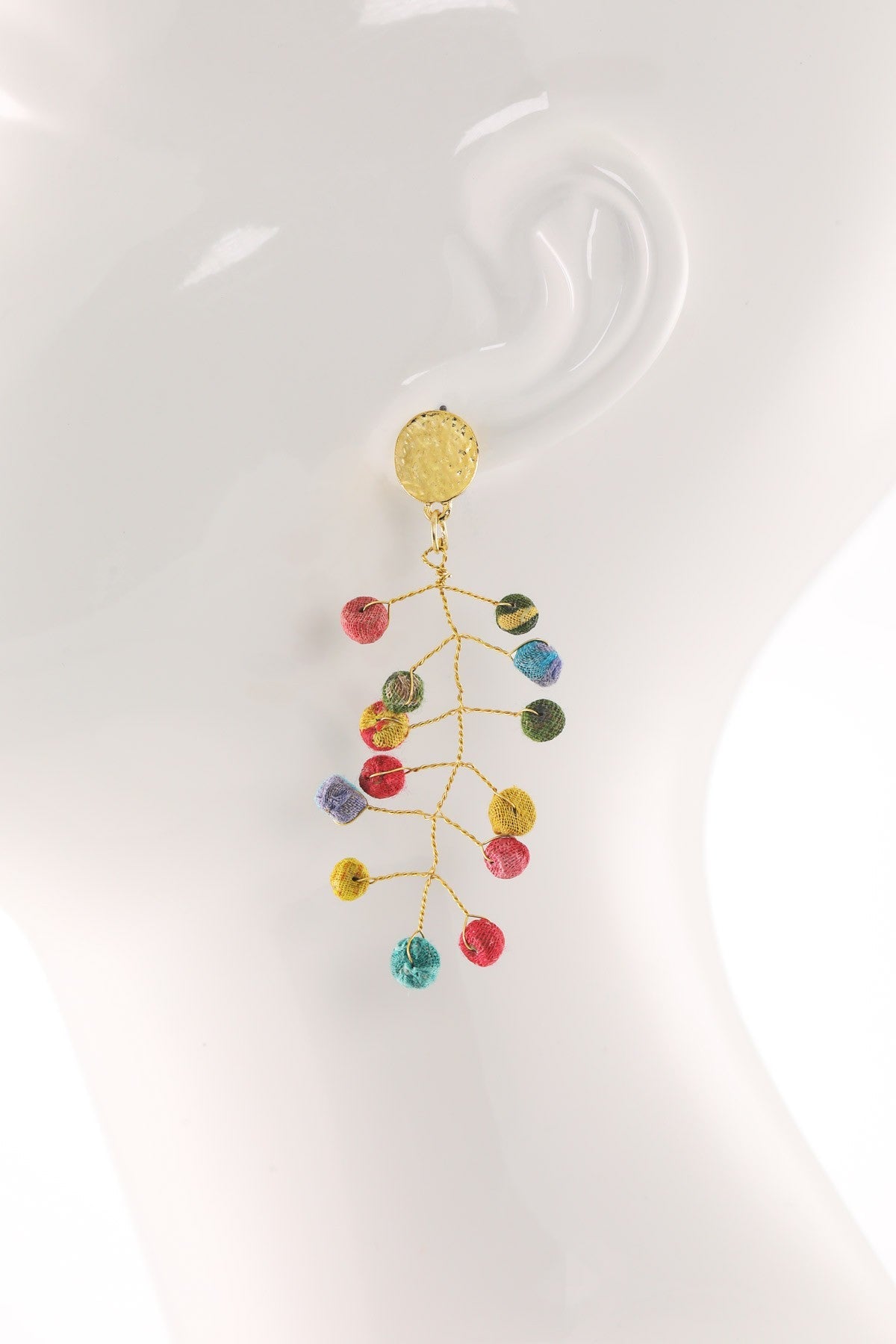 Charming handmade brass wire leaf earrings accented with hand-wrapped cotton beads.
