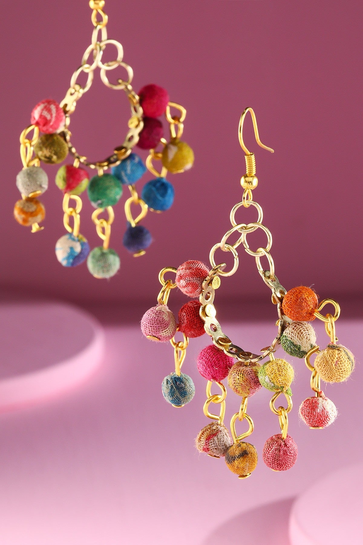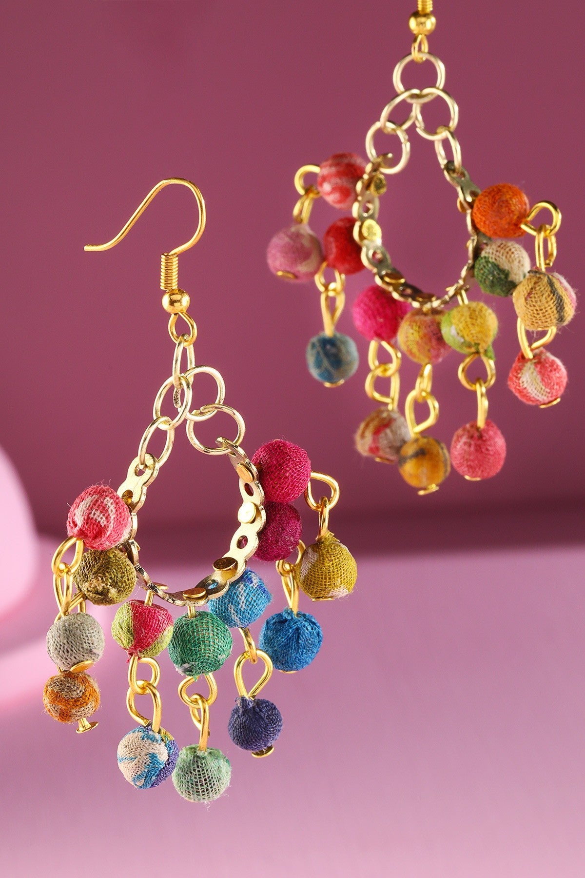 Edgy hoop earrings with hand-wrapped cotton beaded dangle accent earrings