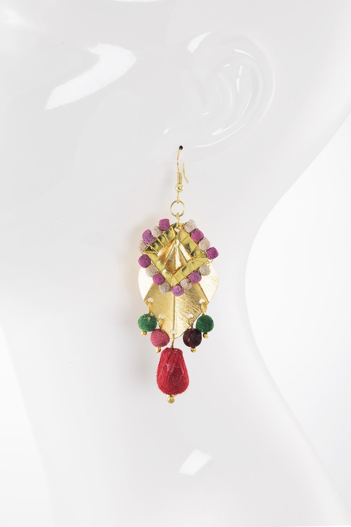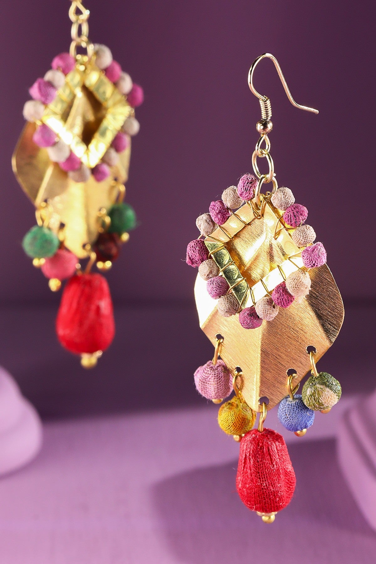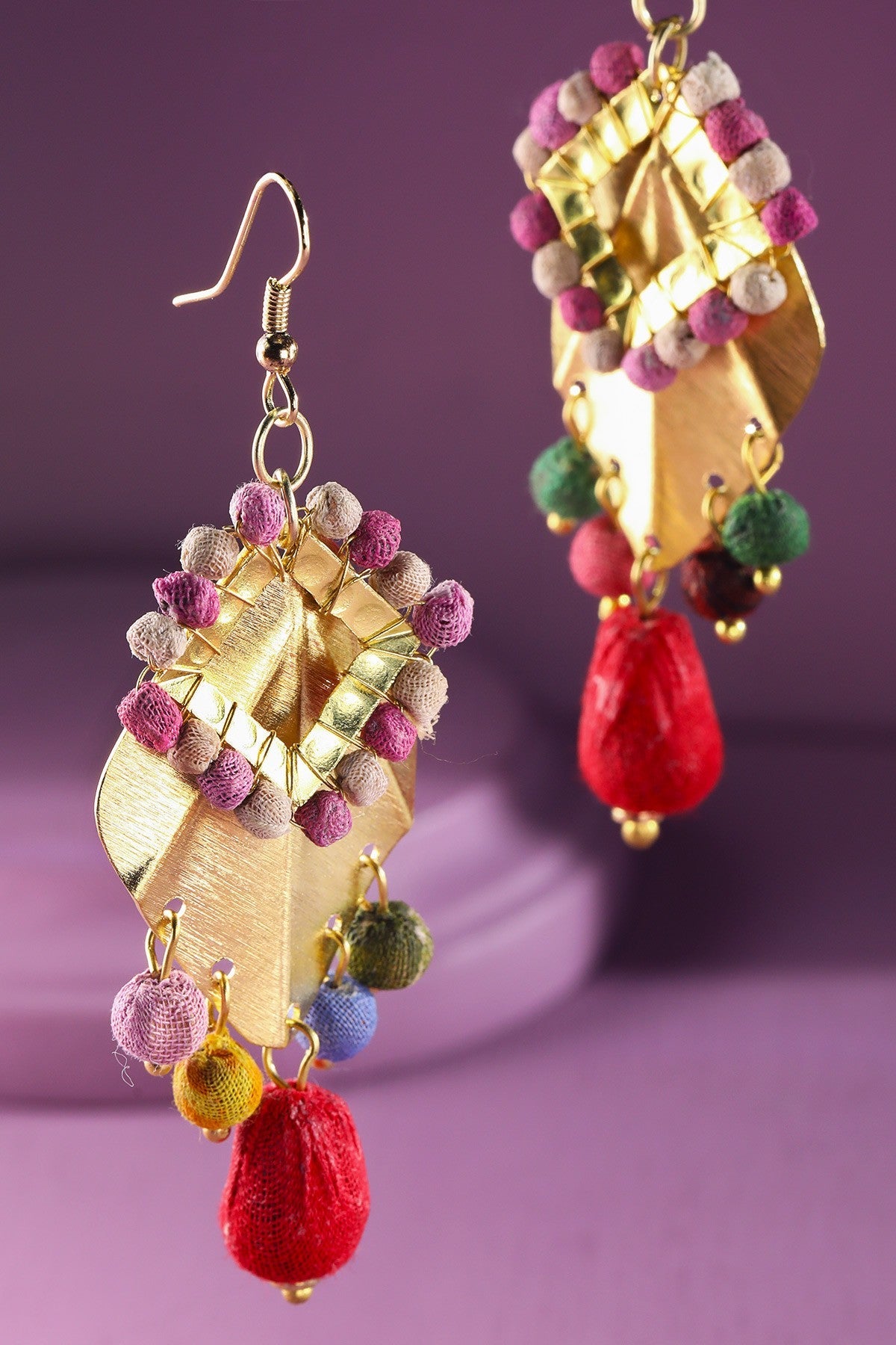 Handmade Colorful Layered Leaf & Bead Earrings