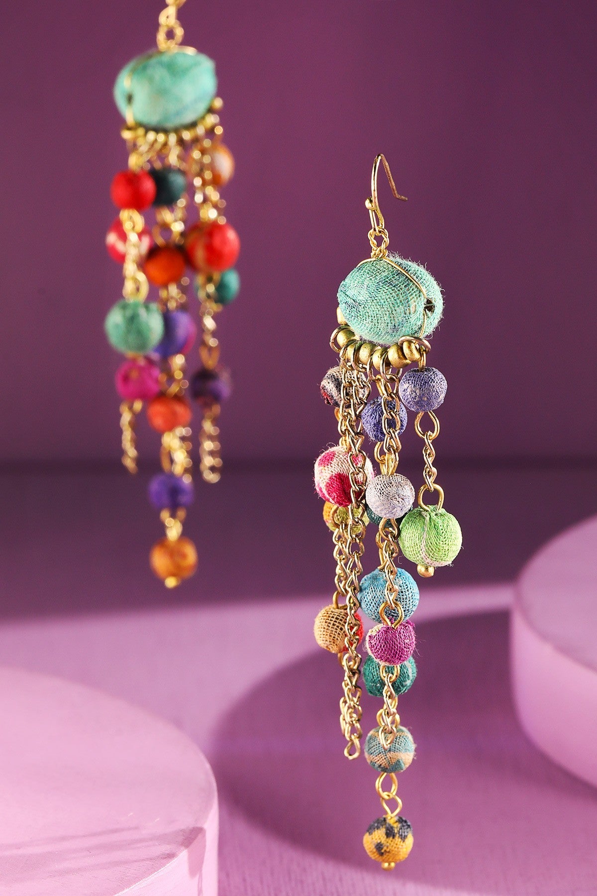 Unique handmade cotton bead dangle chain earrings with an eye-catching design.