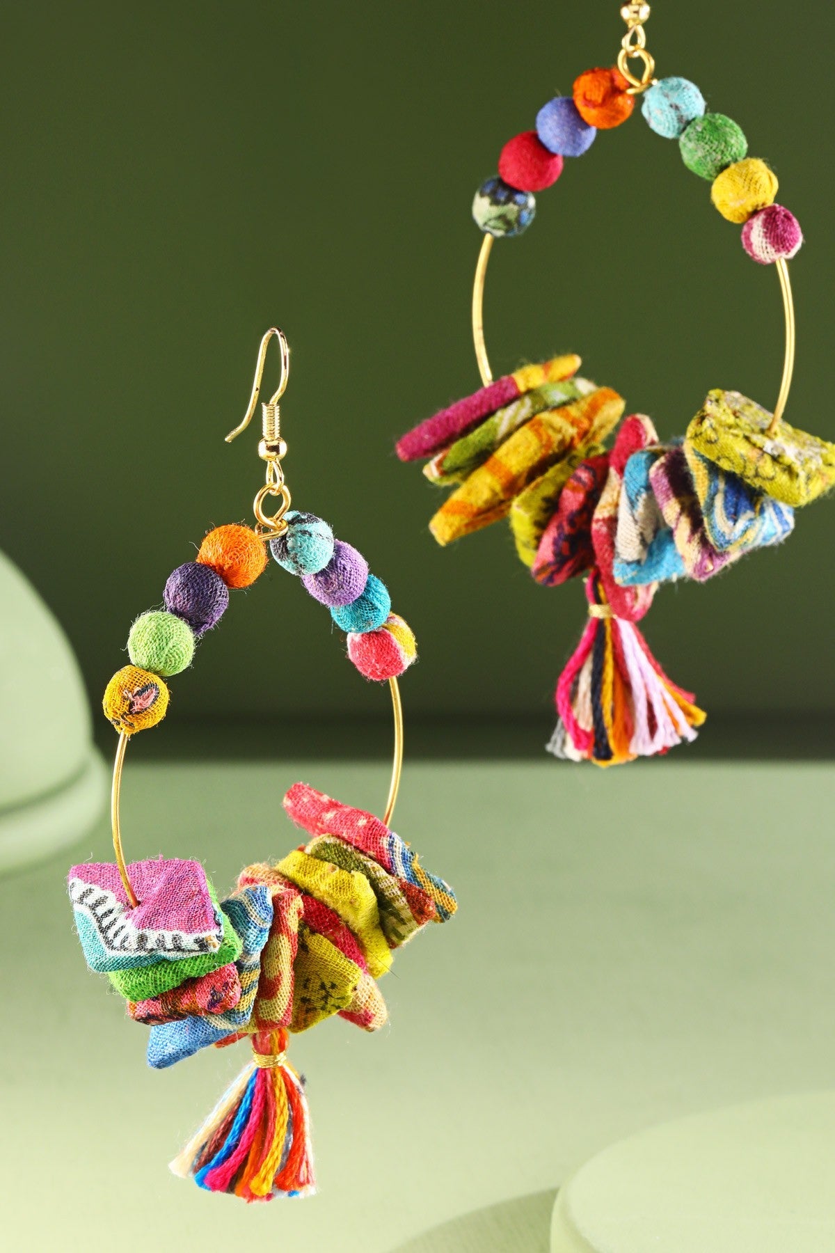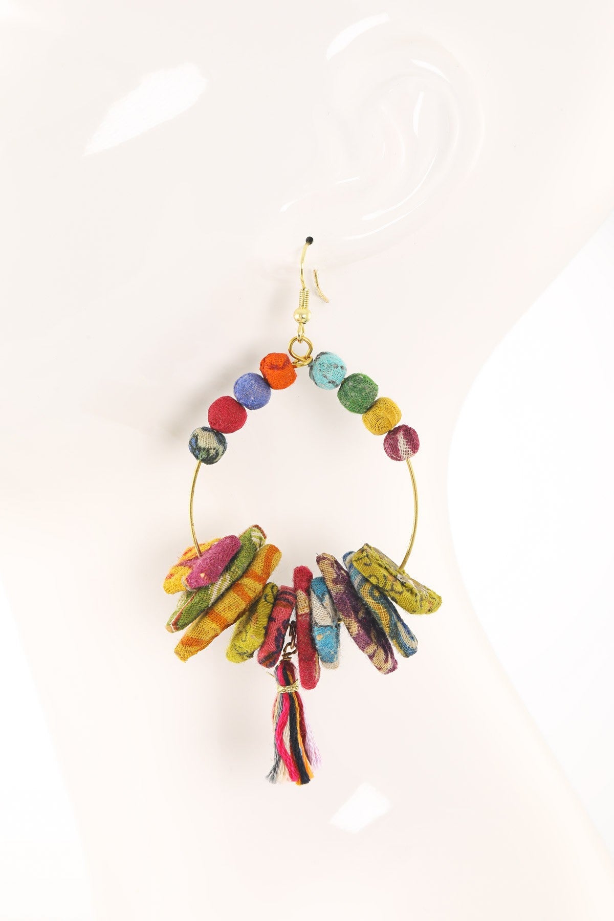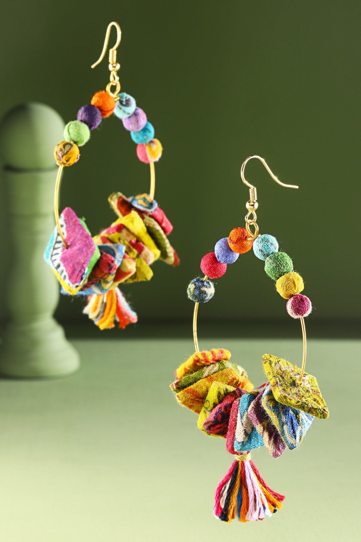 Dazzling dangle teardrop earrings with exquisite hand-wrapped cotton beaded accent tassels