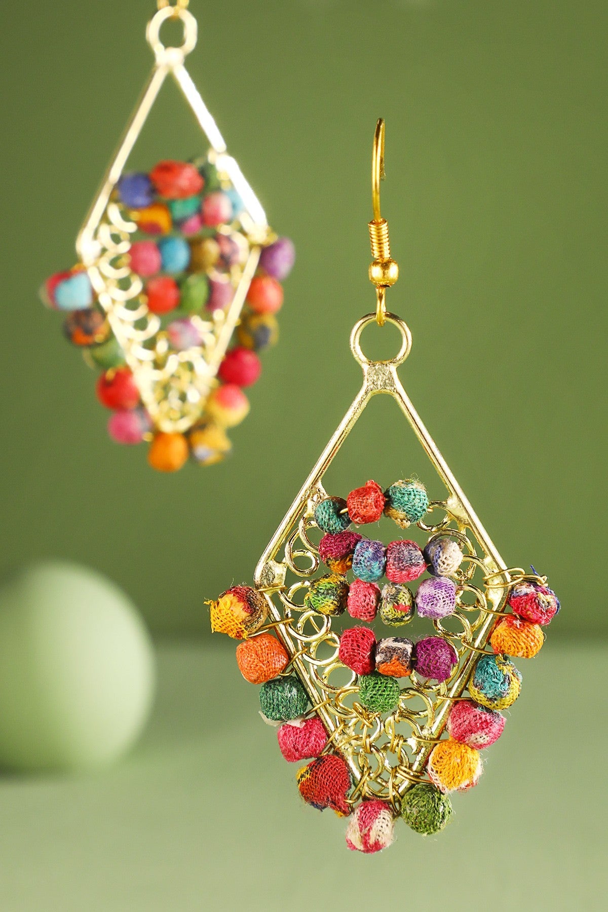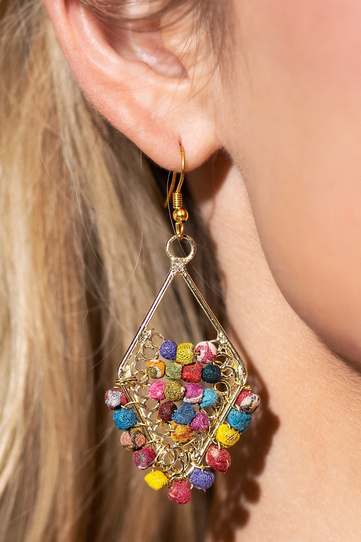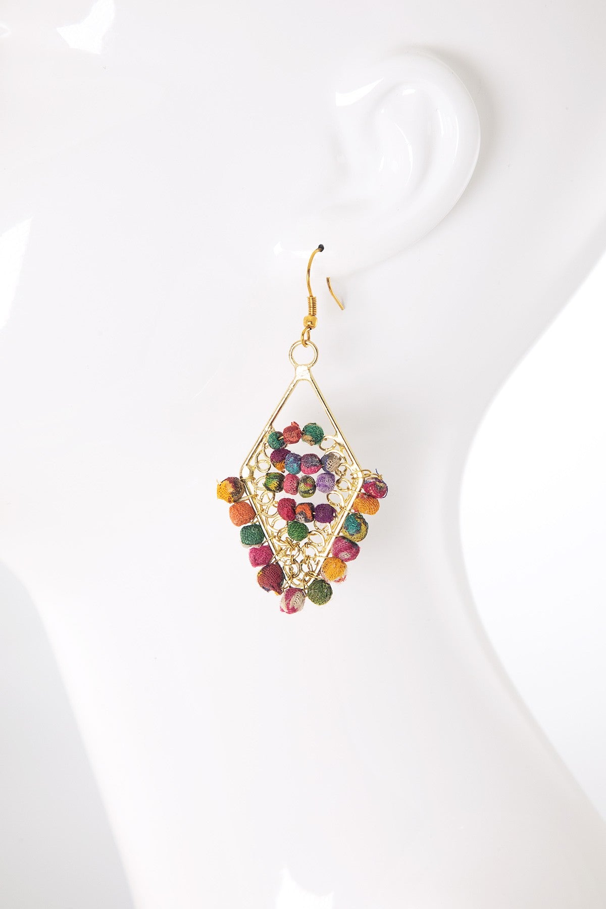 Handmade Cotton Beaded Diamond Drop Earrings